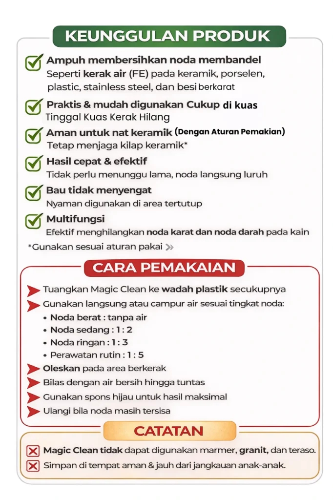 Produk Pembersih Magic Clean diDistribusikan dari pihak (Produsen/CV.Putra Inti Cemerlang) ke pihak (Pengecer /Mitra Pemasaran) dan dijual langsung secara Retail ke Konsumen.